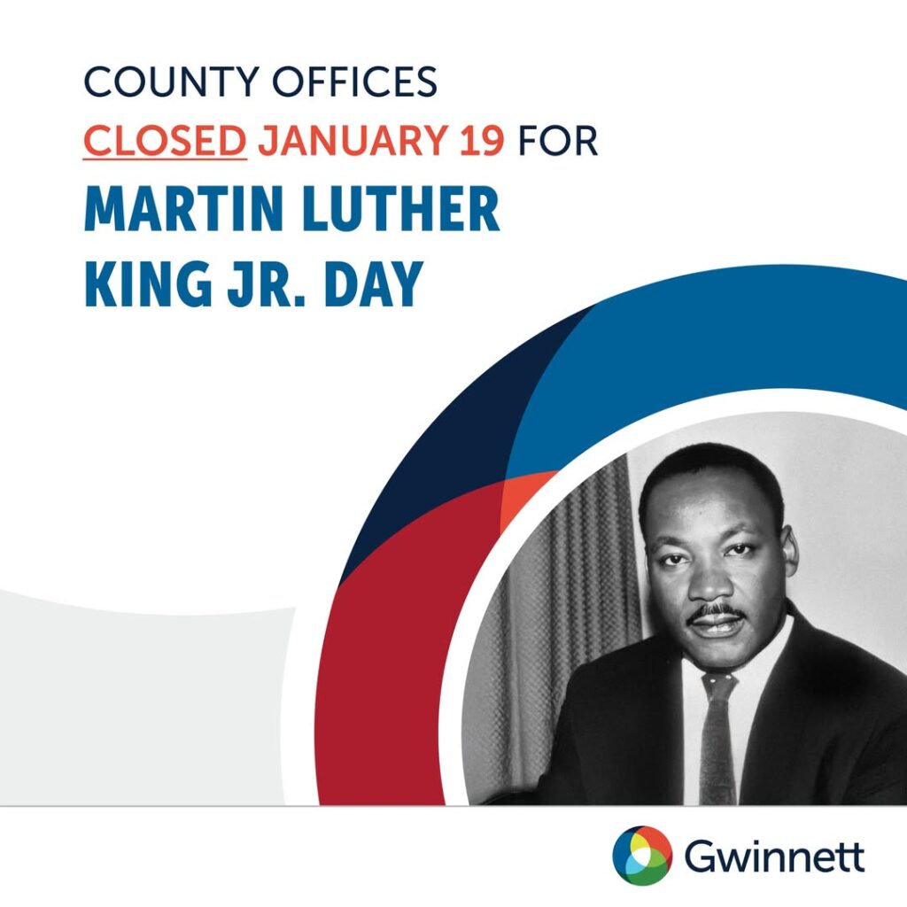 Gwinnett County Government All Gwinnett County Government offices, with the exception of those required for the comfort and safety of residents, will be closed Monday, January 26. Trash and recycling There will be no trash and recycling services on Monday, January 26, for residents in unincorporated Gwinnett. All services will be delayed by one day. […]