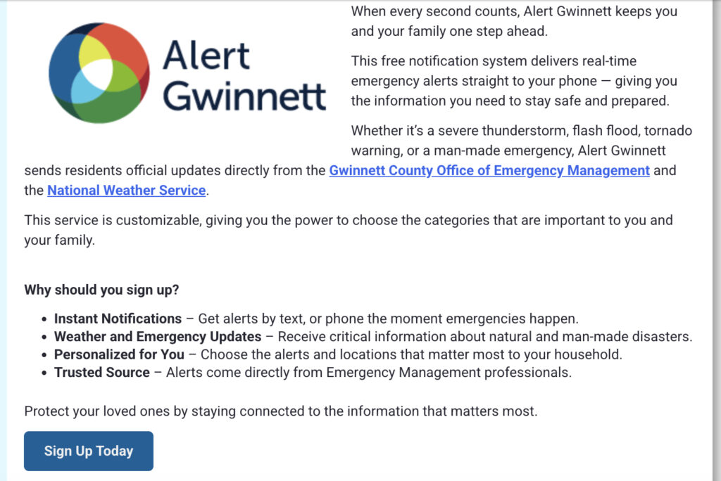 Protect what matters most — your family. With Alert Gwinnett, you’ll get real-time alerts about severe weather and other emergencies affecting your area. Stay connected. Stay informed. Stay safe. Sign up today at GwinnettCounty.com/AlertGwinnett Views: 2